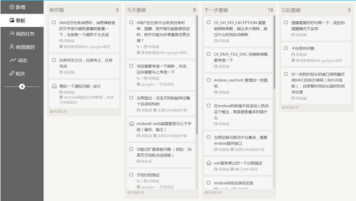 進入任務(wù)管理頁面,系統(tǒng)默認顯示任務(wù)看板,看板列出操作者正在處理的任務(wù)、。