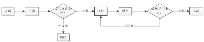 | 4 | 退回 | 任務(wù)執(zhí)行人已看過任務(wù),但是執(zhí)行人不能承擔(dān)或不想做這個任務(wù) | |
