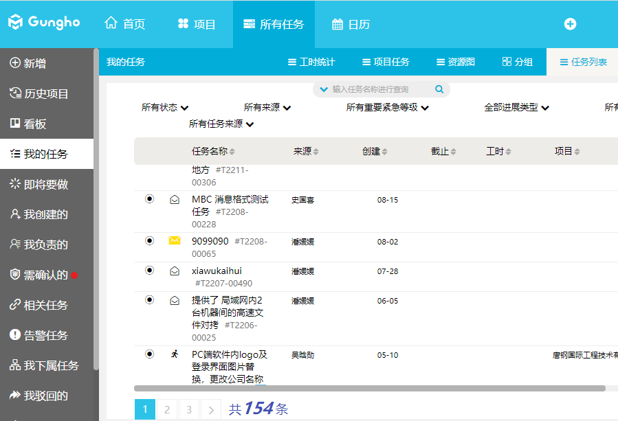 項(xiàng)目全生命周期管理平臺中我的任務(wù)列表