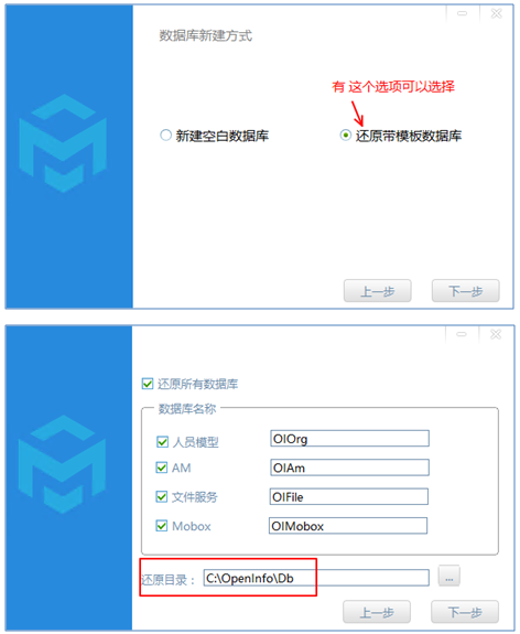 這些其實在企業系統正式部署前,需要做一些基本功能定義,這個定義后 ,最好對 OIAm、OIMobox、OIOrg、Oifile 等4個數據庫進行備份,直接還原到企業服務器上,這樣整體來說數據比較完整及正確。另外也相對方便。(注意:這種mobox還原的模式 只是適合與第一次系統部署。若用戶已經部署過了,已經有自己的數據了,這個bak還原的模式是不適合的,要切記??!)