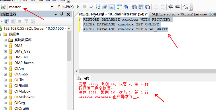 今天遇到一個(gè)非常詭異的現(xiàn)象,xxmobox數(shù)據(jù)庫(kù)還原后提示成功,但這個(gè)數(shù)據(jù)庫(kù)無(wú)法被dns服務(wù)鏈接。經(jīng)過(guò)分析發(fā)現(xiàn) xxmobox數(shù)據(jù)庫(kù)狀態(tài):關(guān)閉,正常