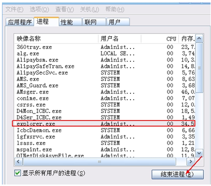 1、通過windows 任務管理器將 explorer.exe 強行結束