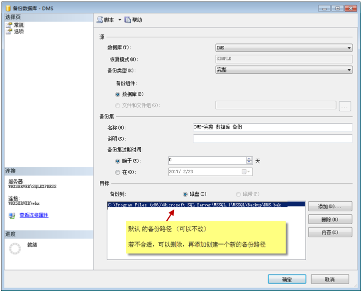 2)前面我們將mobox系統(tǒng)數(shù)據(jù)庫備份產(chǎn)生了?DMS.bak?文件,將這個(gè)文件拷貝到別的服務(wù)器,并以當(dāng)天名稱加后綴,進(jìn)行保存(如:DMS_20170222.bak).