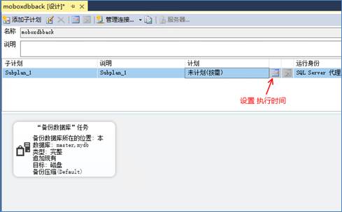5、單擊“子計(jì)劃時間表”(日歷圖標(biāo))以設(shè)置SQLserver自動備份頻率
