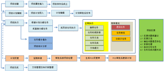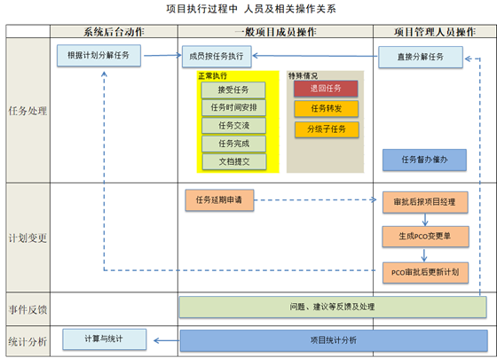 當項目計劃審批通過正式生效后,該版本的項目計劃就處于執(zhí)行狀態(tài)。Gungho系統(tǒng)后臺會根據(jù)項目計劃自動分解計劃任務。這些任務會分派到對應的執(zhí)行人。執(zhí)行人收到任務后,可以對任務進行處理。項目成員若發(fā)現(xiàn)問題可以在項目內(nèi)進行問題反饋(任務管理、反饋管理怎樣處理,在后面內(nèi)容詳細介紹)。