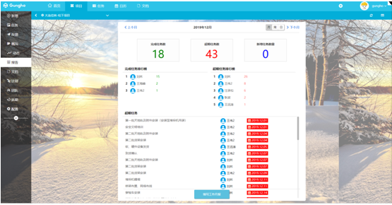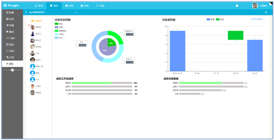 能對本項目的任務執(zhí)行狀態(tài)進行統(tǒng)計分析,能看到完成的排行等信息